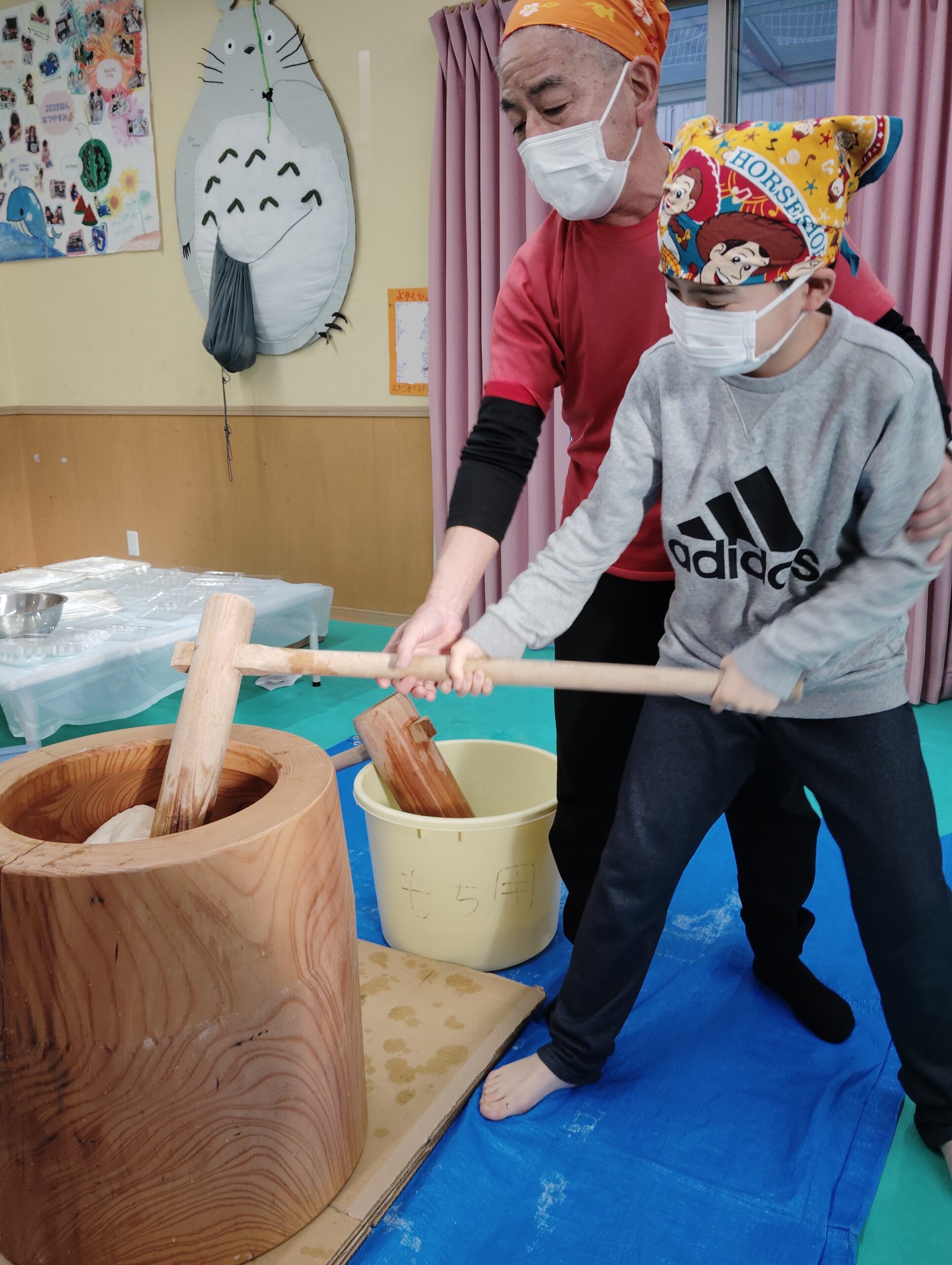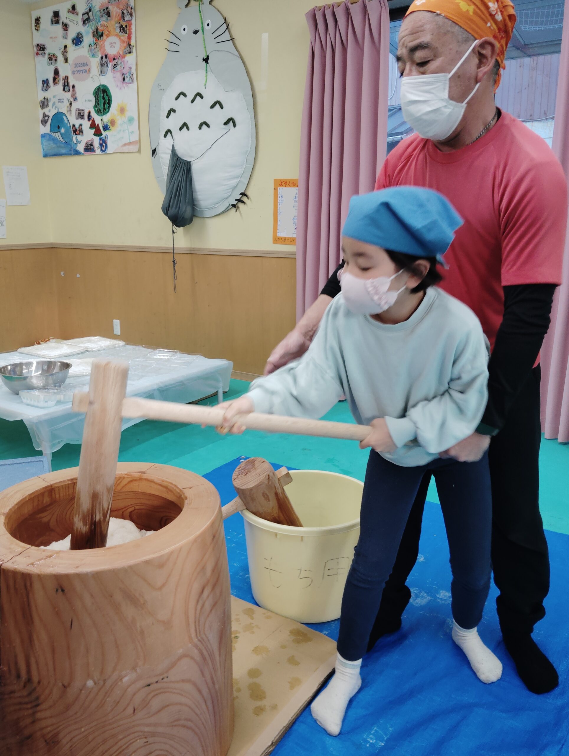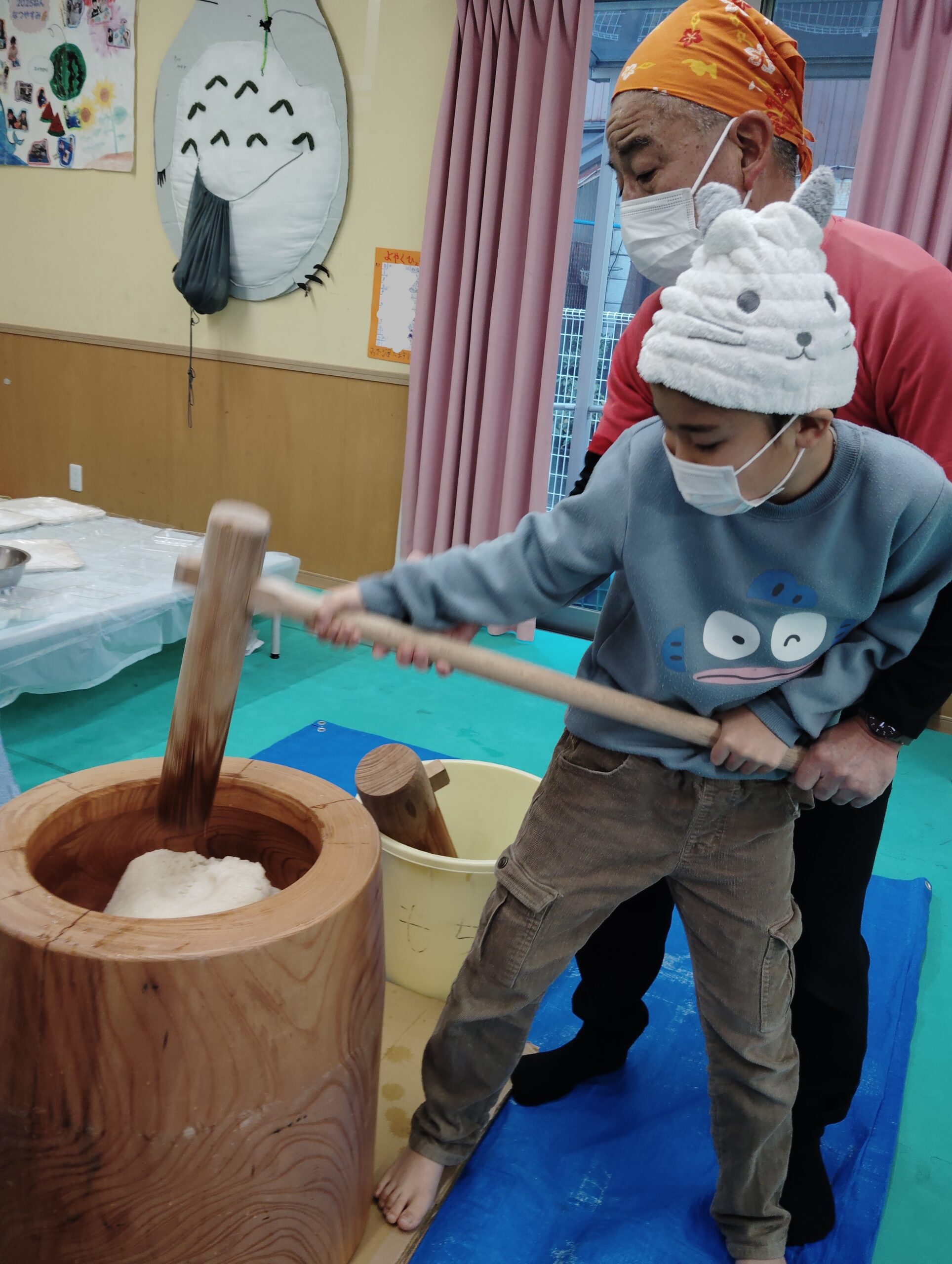杵が重そうでしたが、職員に支えてもらいながら、ワクワクした表情でしたよ!